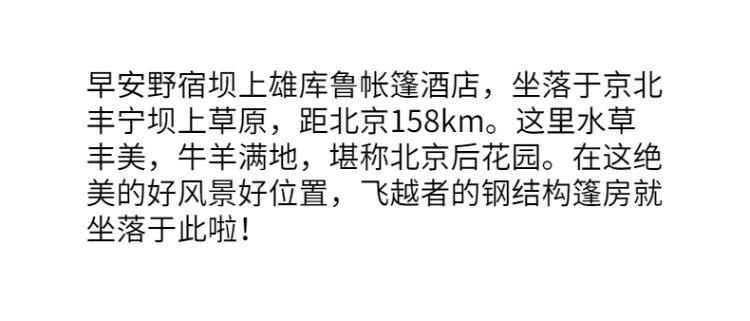 早安野宿壩上雄庫魯帳篷酒店,坐落于京北豐寧壩上草原,距北京158km。這里水草豐美,牛羊滿地,堪稱北京后花園。在這絕美的好風(fēng)景好位置,飛越者的鋼結(jié)構(gòu)篷房就坐落于此啦!