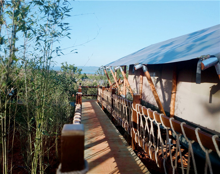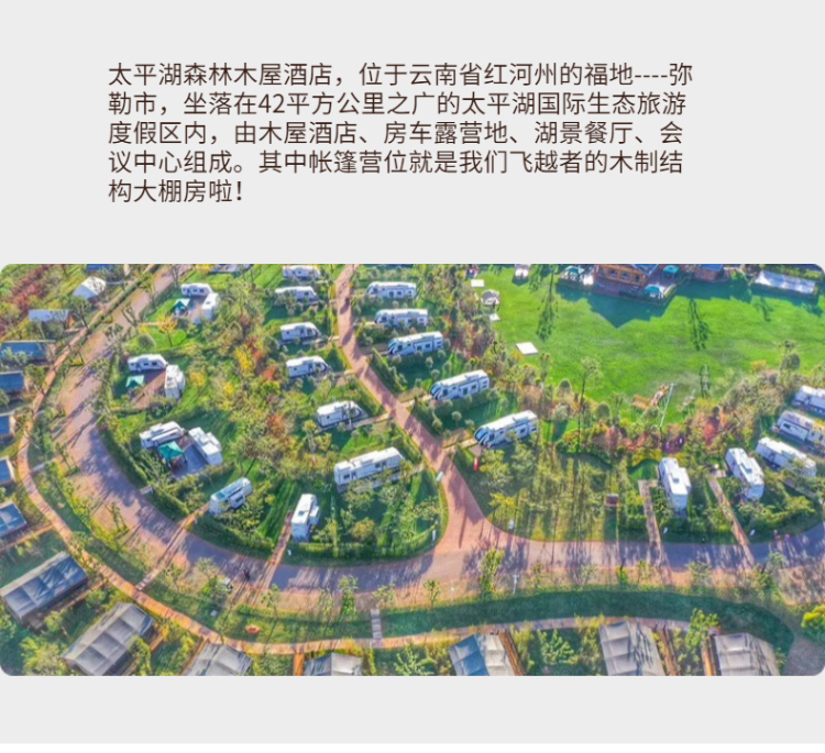 位于云南省紅河州的福地一彌勒市,在42平方公里之廣的太平湖國際生態(tài)旅游度假區(qū)內(nèi),飛越者木質(zhì)結(jié)構(gòu)篷房就坐落于此啦!