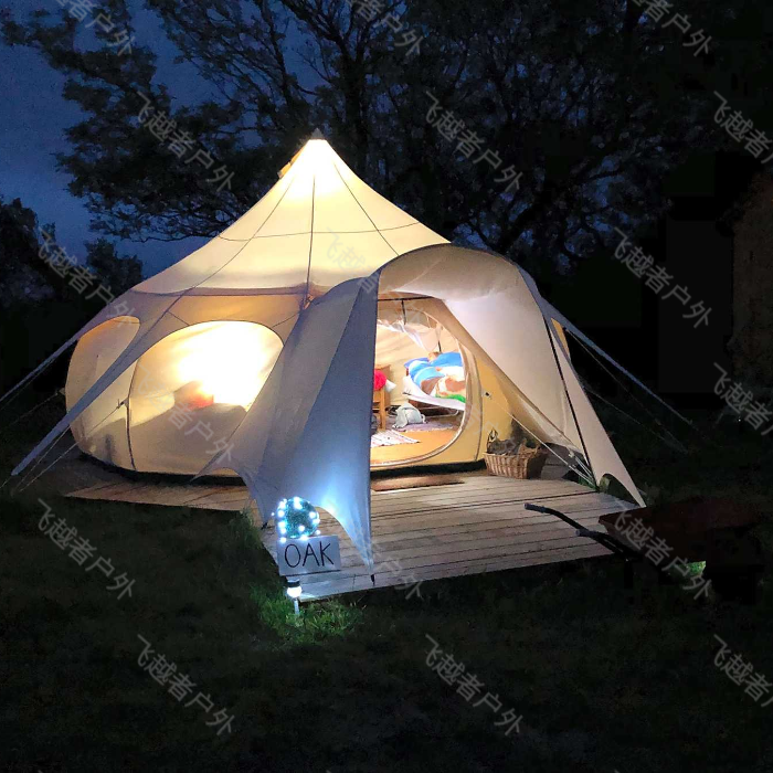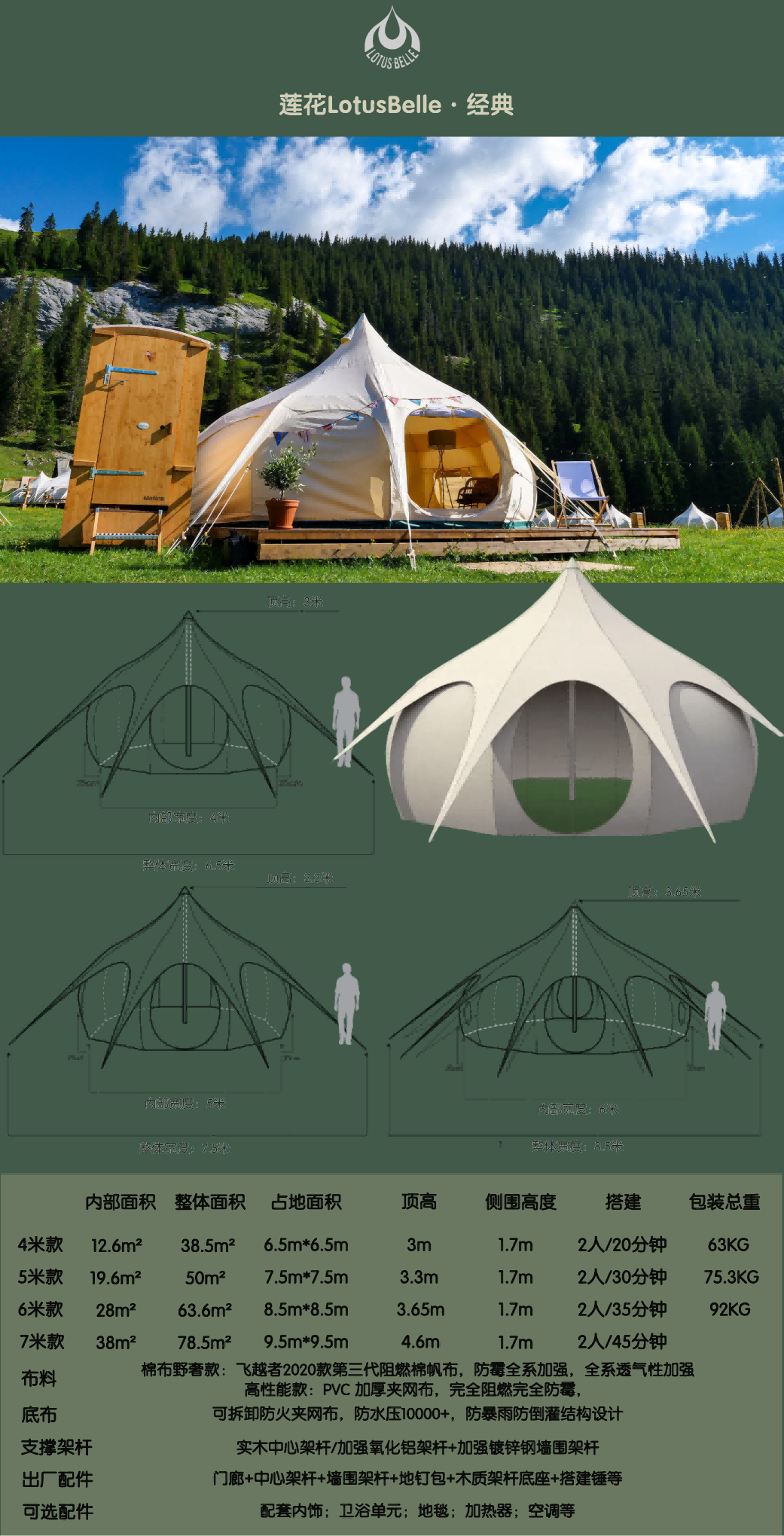 蓮花帳篷英文名“LOTUS BELL TENT”,它是由英國的設(shè)計(jì)師與飛越者共同設(shè)計(jì)完成。